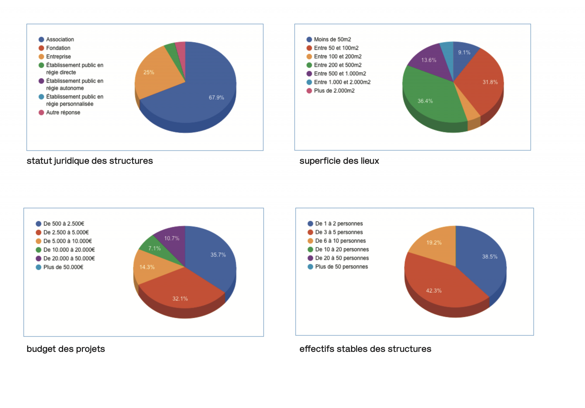 Ainsi, les réponses aux questions portant sur la superficie, les budgets affectés à chaque projet et les effectifs stables des structures convergent :